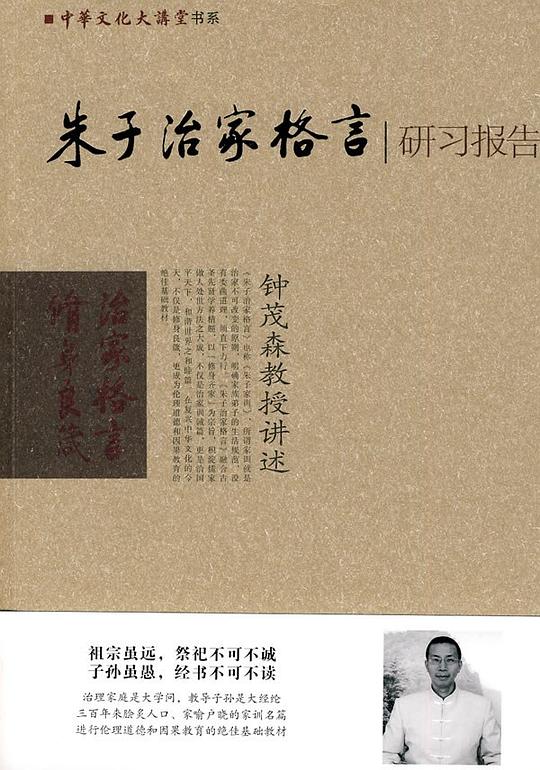 《朱子治家格言研习报告:钟茂森教授讲述》,作者朱柏庐,明末清初著名的理学家、教育家,他又名用纯,字致一。本文也称为“朱柏庐治家格言”,或者“朱用纯治家格言”。